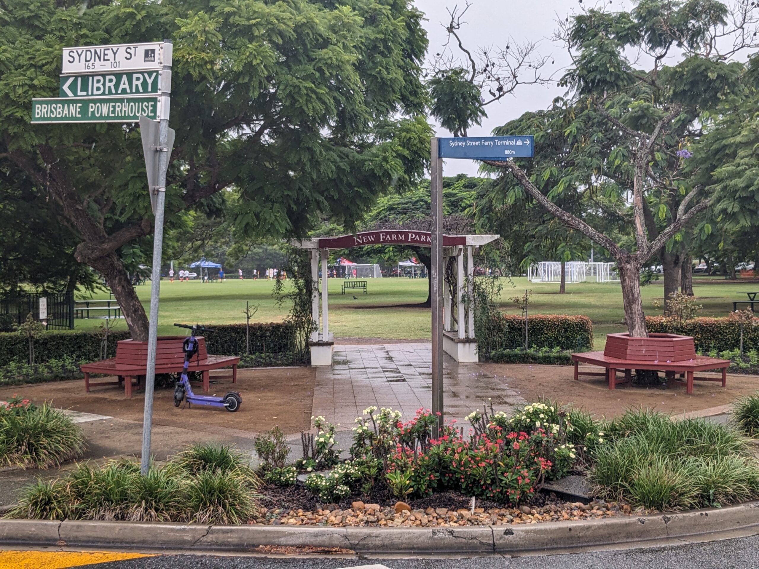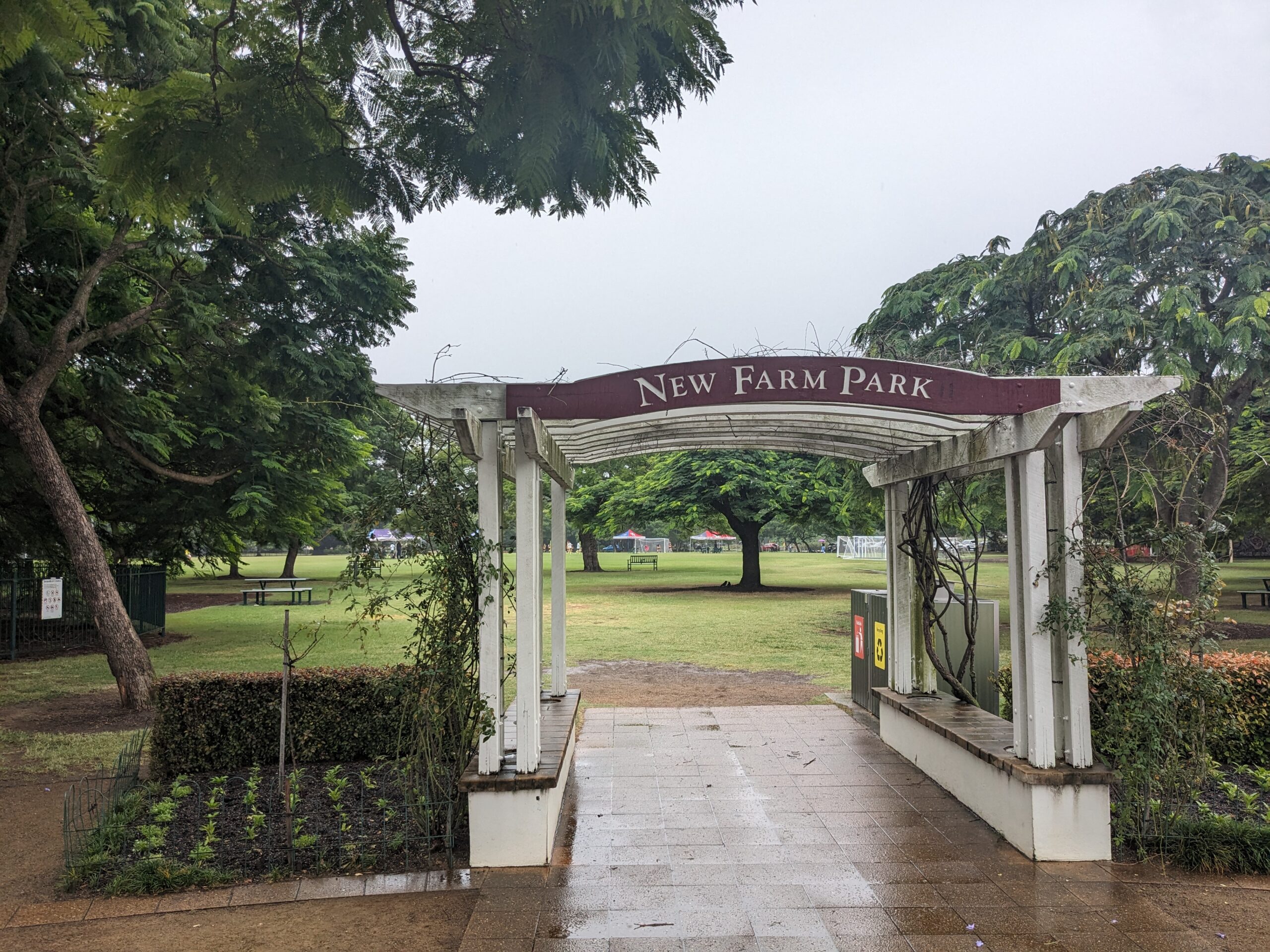 We will meet on the grass behind the New Farm Park sign, which is at the corner of Sydney and Brunswick Sts New Farm; see the photos below!
